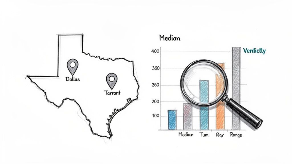 So, how do you find this information? The key is getting access to comparable case results. Platforms like Verdictly do the heavy lifting by compiling publicly available court records and settlement data into a searchable database. This is how you stop guessing and start analyzing what claims like yours are actually worth in your specific part of Texas.