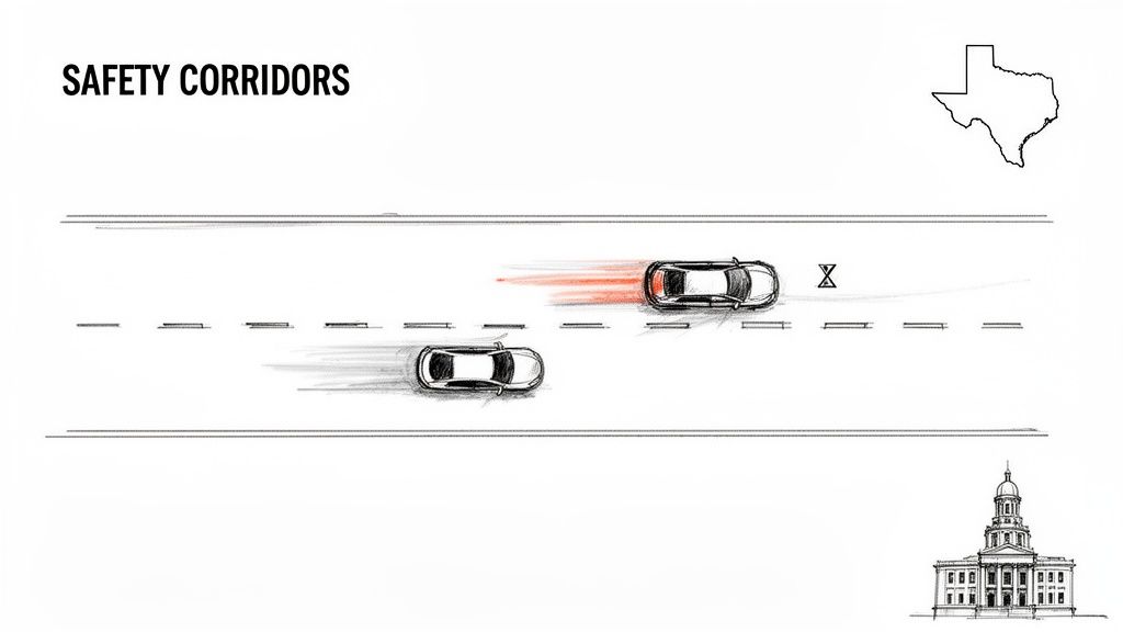 Every time you get behind the wheel, you're accepting a legal duty to drive with reasonable care. A huge piece of that duty is spelled out in the Texas Transportation Code, which mandates that every driver must operate their vehicle "as nearly as practical entirely within a single lane." The reason for this rule is simple: predictability on the road saves lives.
