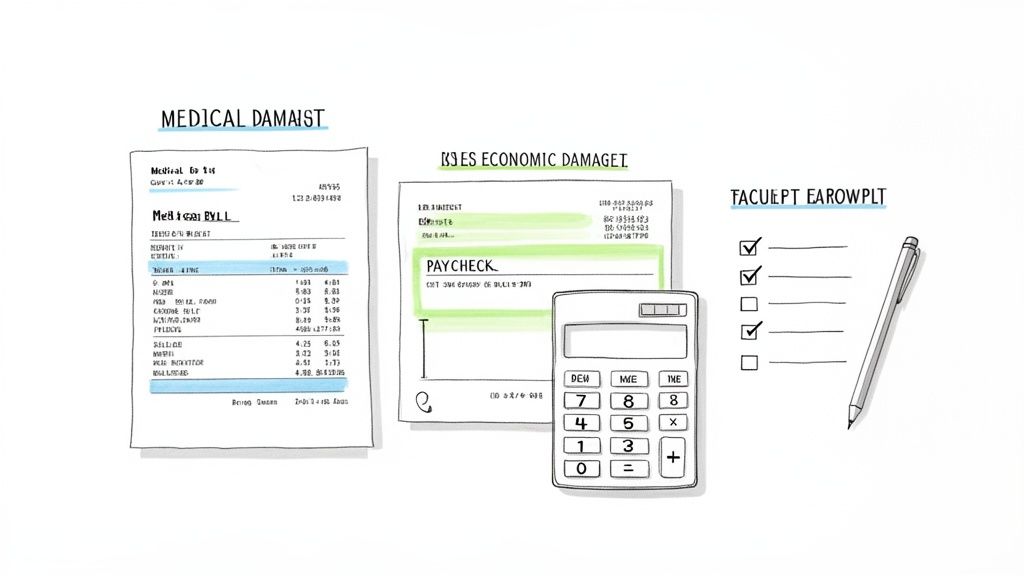 Unlike other parts of a settlement that can be subjective, economic damages are all about the hard numbers. Every single dollar you had to spend or couldn't earn because of the crash fits into this bucket. Getting this part right is non-negotiable for building a solid case.