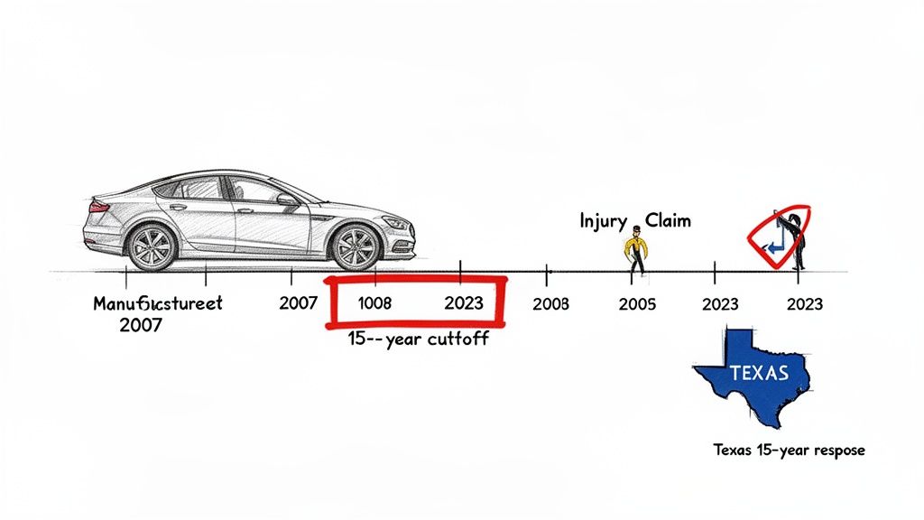 This isn’t 15 years from when you got hurt; it's 15 years from the day that product first hit the market. Once that window slams shut, your right to sue the manufacturer for that defect is gone, usually for good.