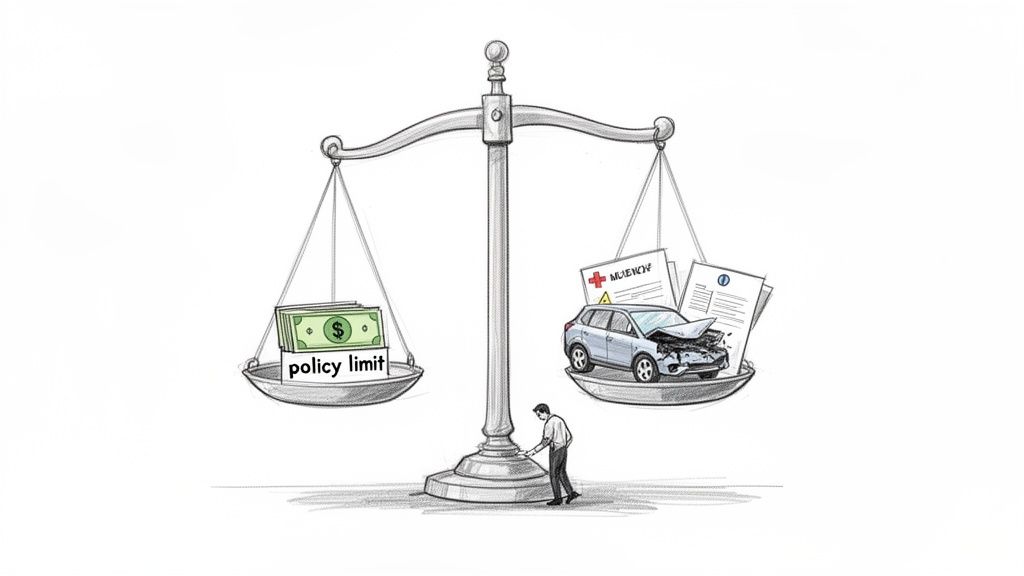 Think of the policy limit as the total amount of money in the pot. It doesn't matter how catastrophic your injuries are or how high your medical bills get. The adjuster can only work with what's available in that policy. It’s the absolute ceiling on what the insurance company can—and will—offer.