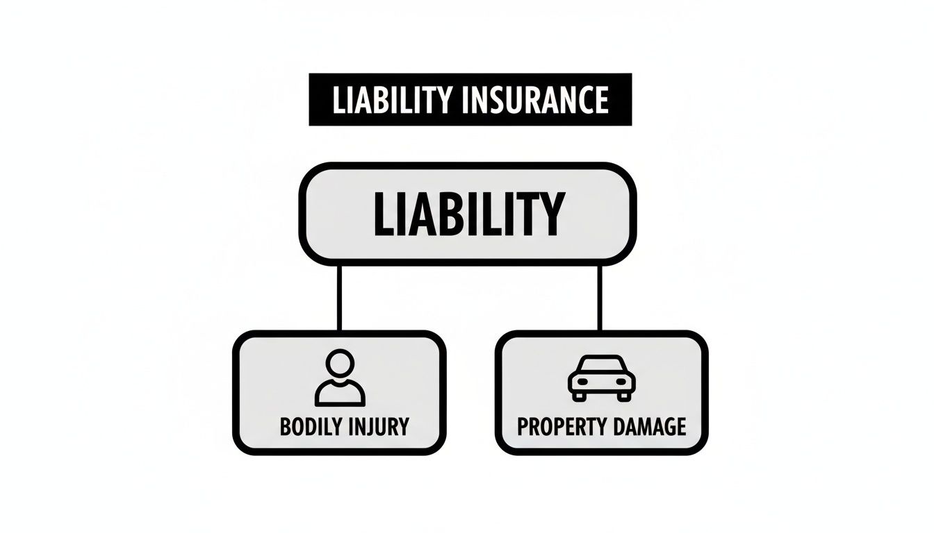 This diagram helps show how liability insurance is built around those two core pillars: covering injuries and covering property damage.