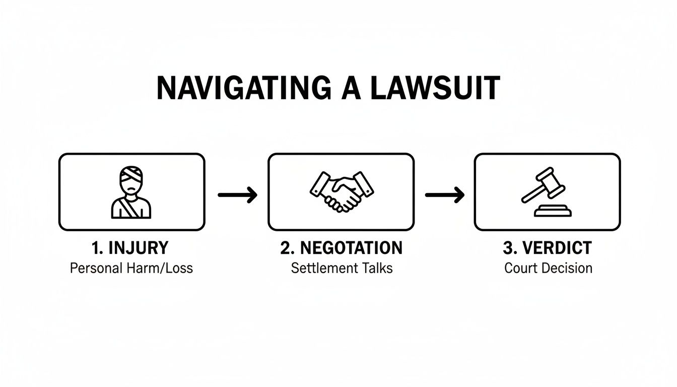 The word "litigation" can sound pretty intimidating, bringing to mind images of complex courtroom dramas and confusing legal jargon. But it's much more manageable when you think of it as a journey with a clear, logical sequence of steps. Each stage is a signpost, guiding you from the moment of injury to a final resolution.